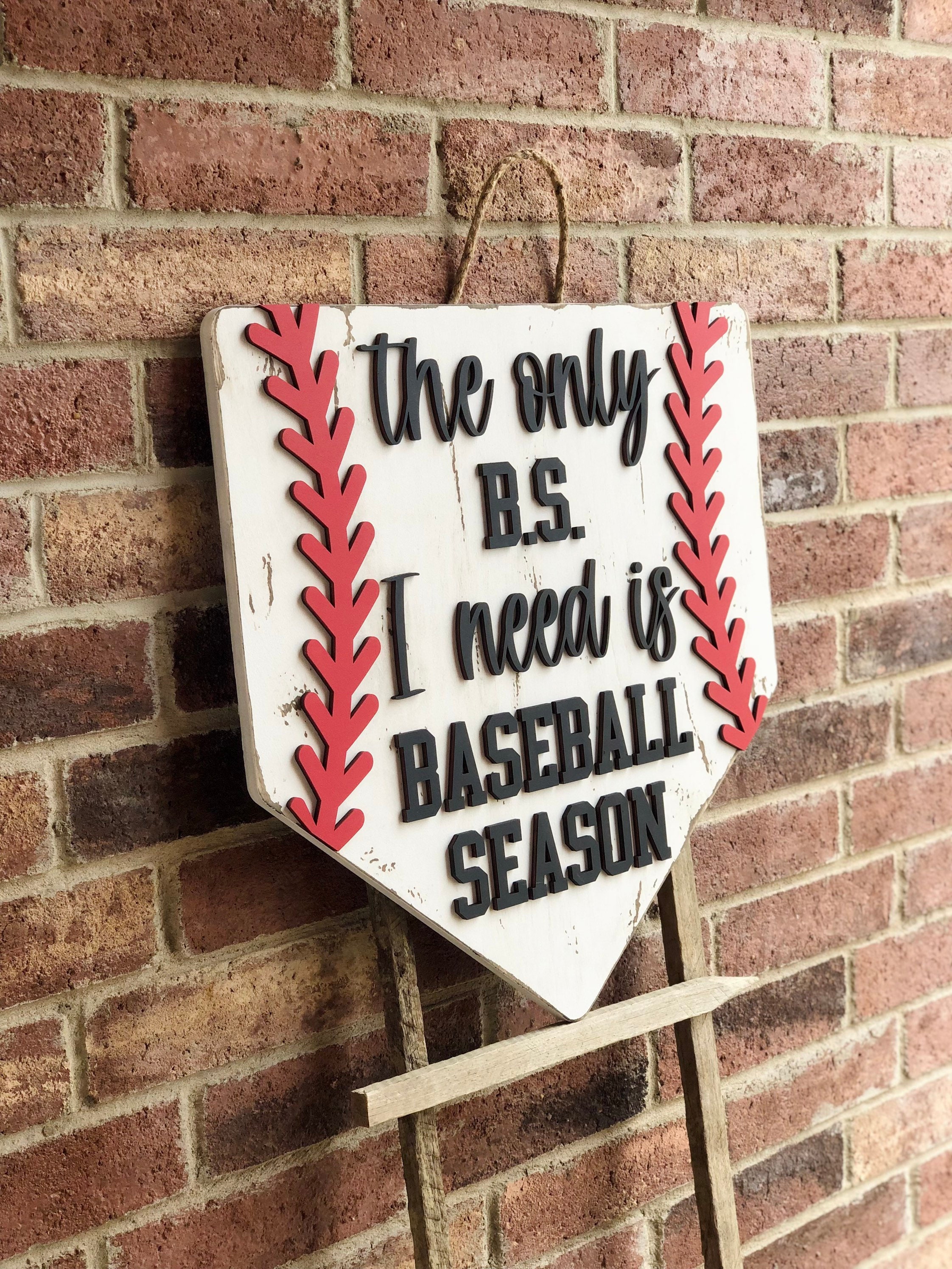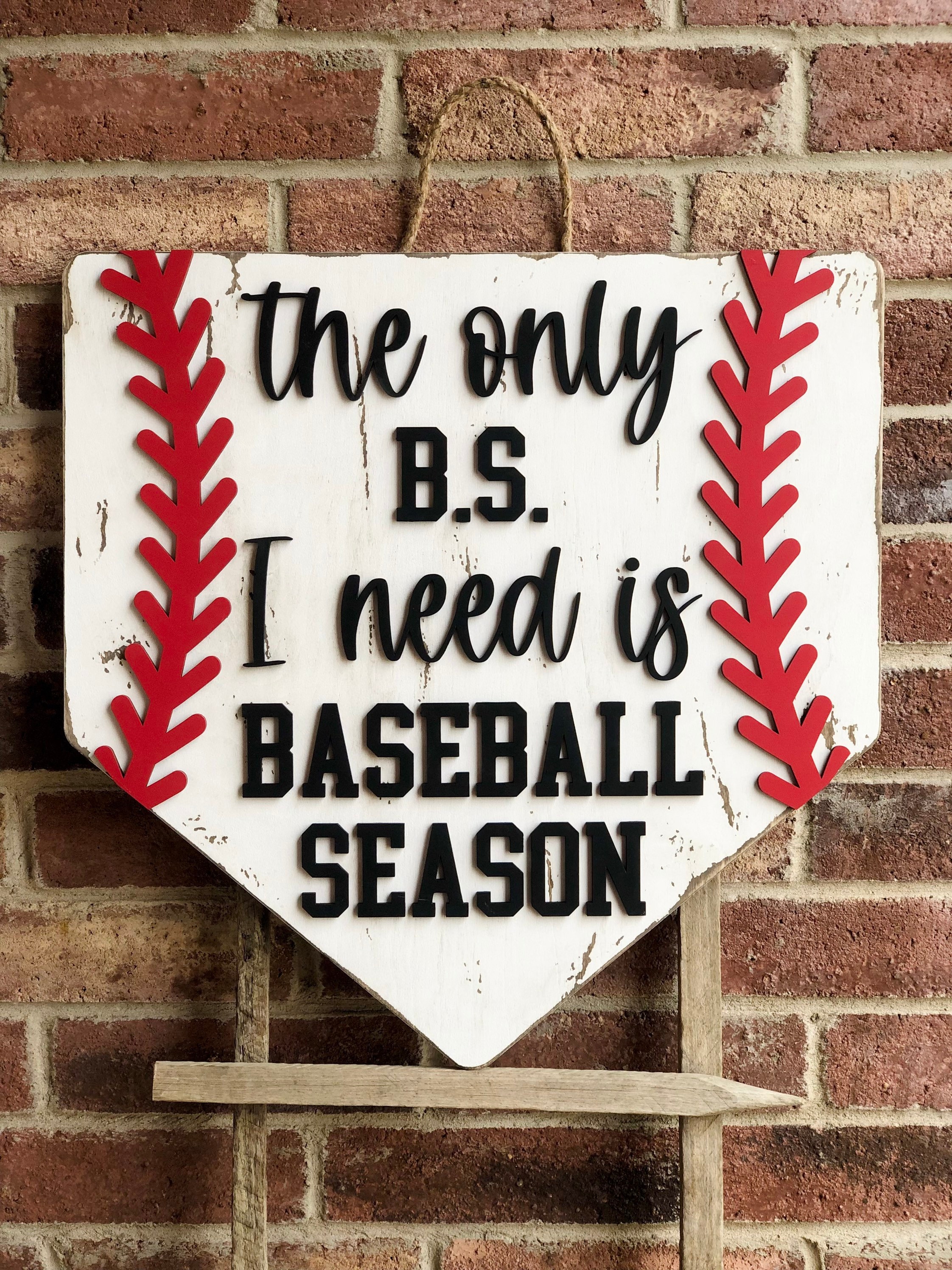 THE ONLY B.S. I NEED IS BASEBALL SEASON, FRONT DOOR DECOR, DECOR FOR FRONT DOOR, BASEBALL WREATH, DOOR HANGER, RUSTIC WOODEN PORCH DECOR FOR SPRING, BASEBALL PLATE