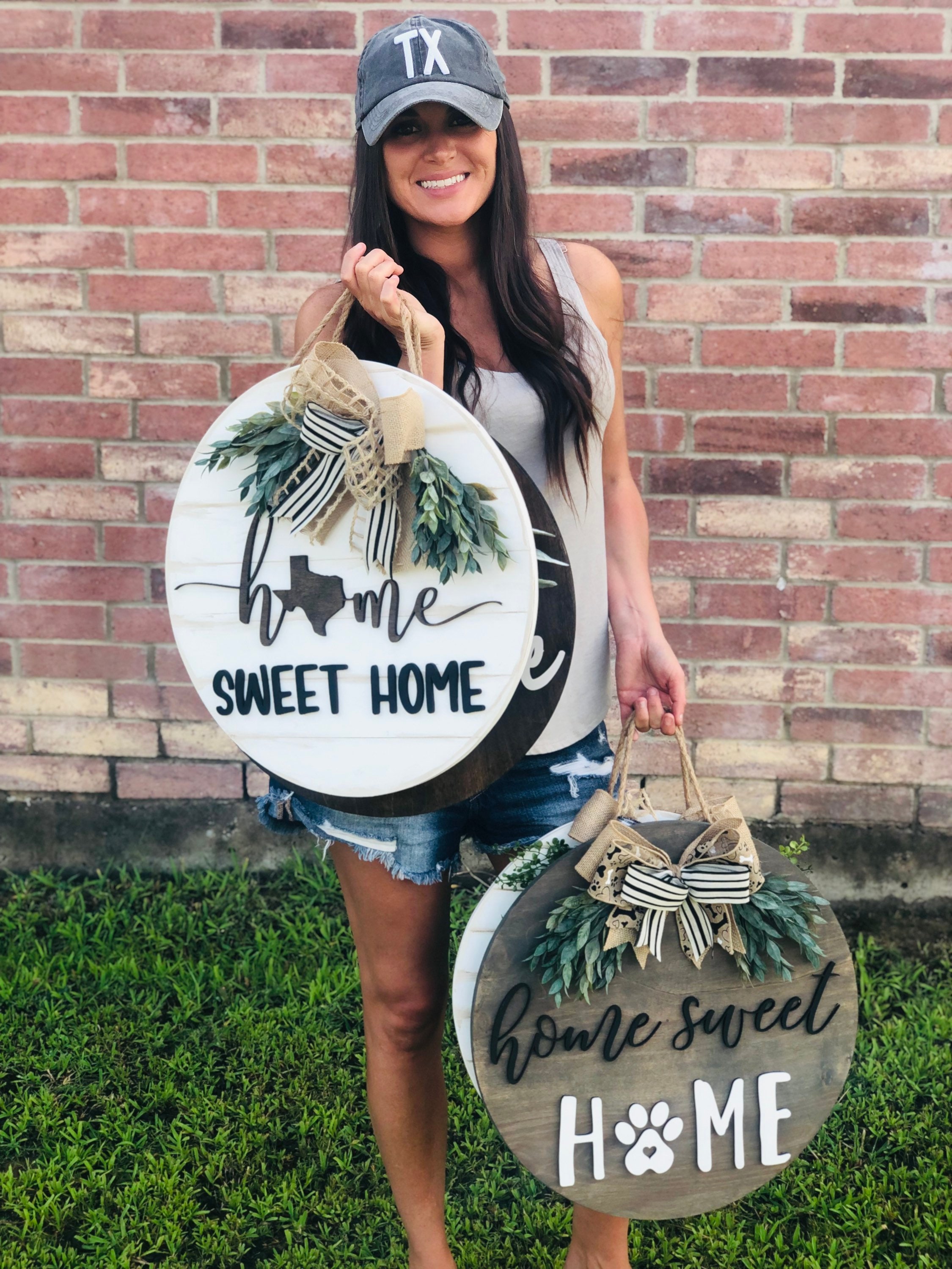 Want to freshen up your front door? Or maybe you need to purchase a gift? These make the perfect gift for a loved one! Whether it be a housewarming gift, wedding gift, client gift, or just for yourself for your home… we have you covered! This beautiful Home Sweet Home Door Hanger is one of a kind!