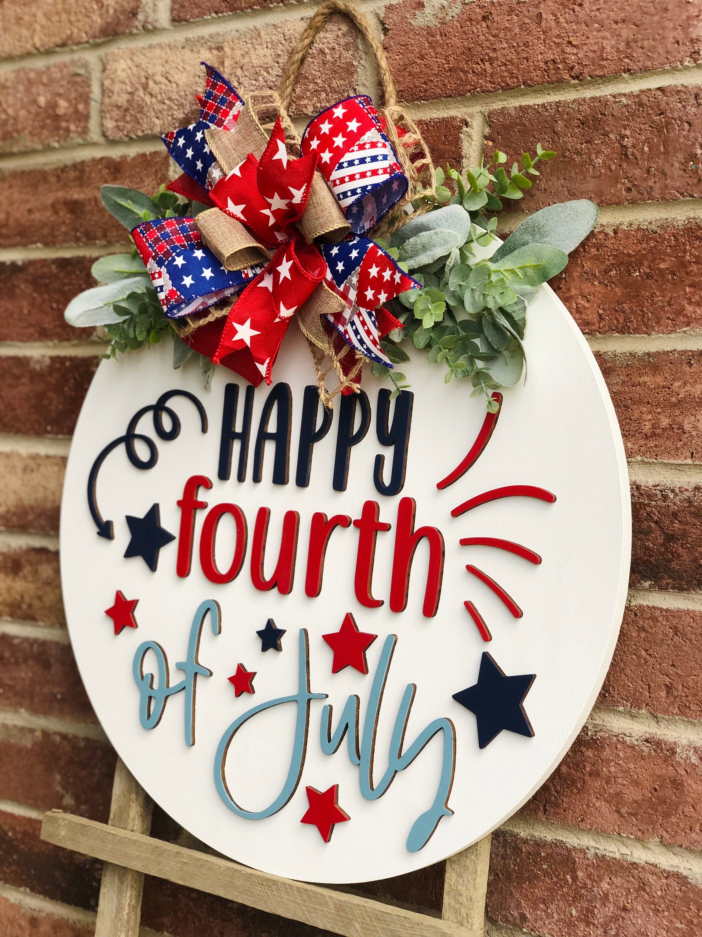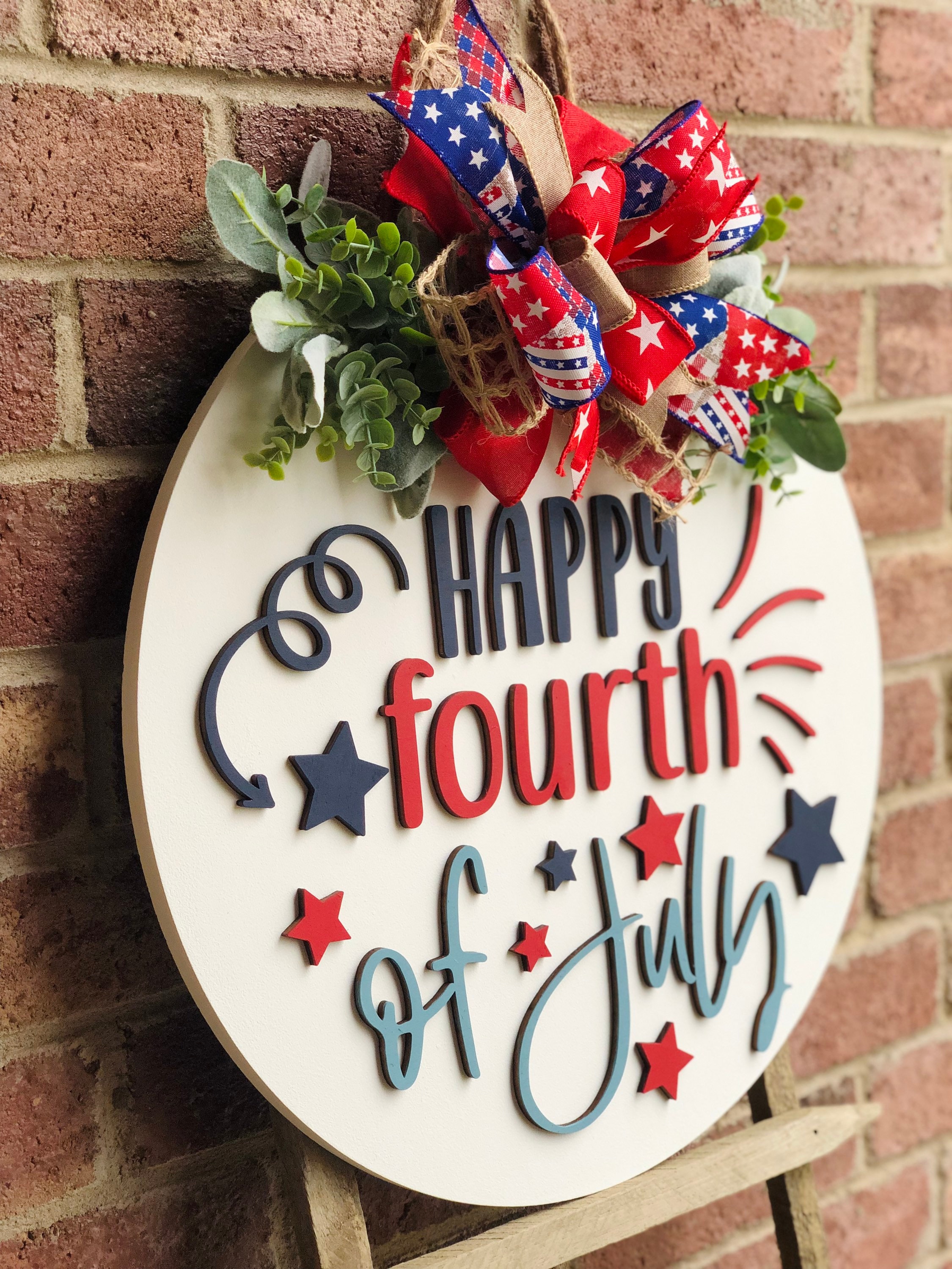 These make the perfect gift for a loved one! Whether it be a housewarming gift, wedding gift, client gift, or just for yourself for your home… we have you covered! This beautiful Americana Happy Fourth of July Door Hanger Decor is one of a kind!