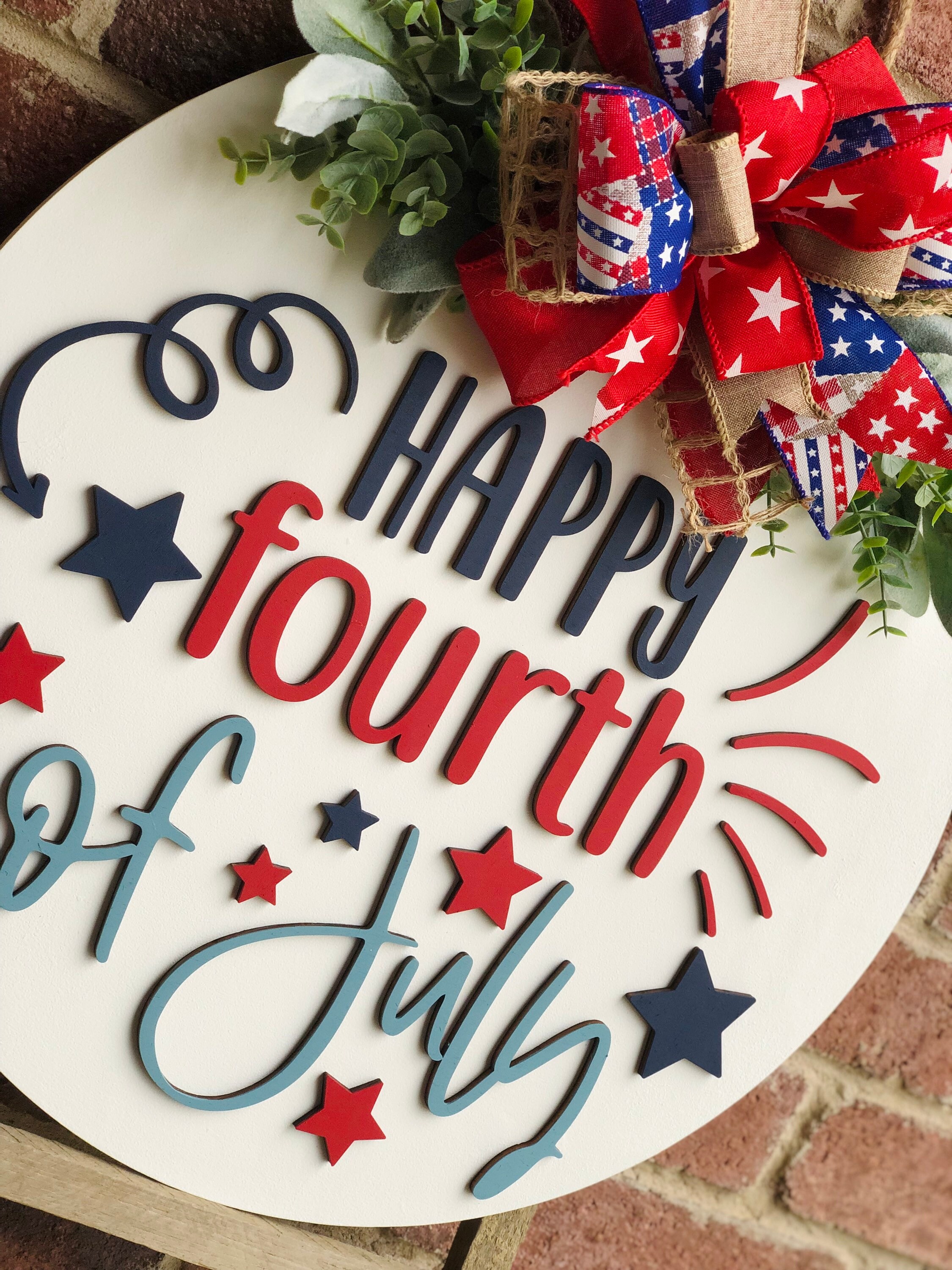 Front Door Decor, Happy 4th of July Door Hanger, Americana Home Decor, 3D Letters Door Sign, Patriotic Wreath, Farmhouse Outdoor Sign, Gift, Happy Fourth of July Door Hanger Wreath