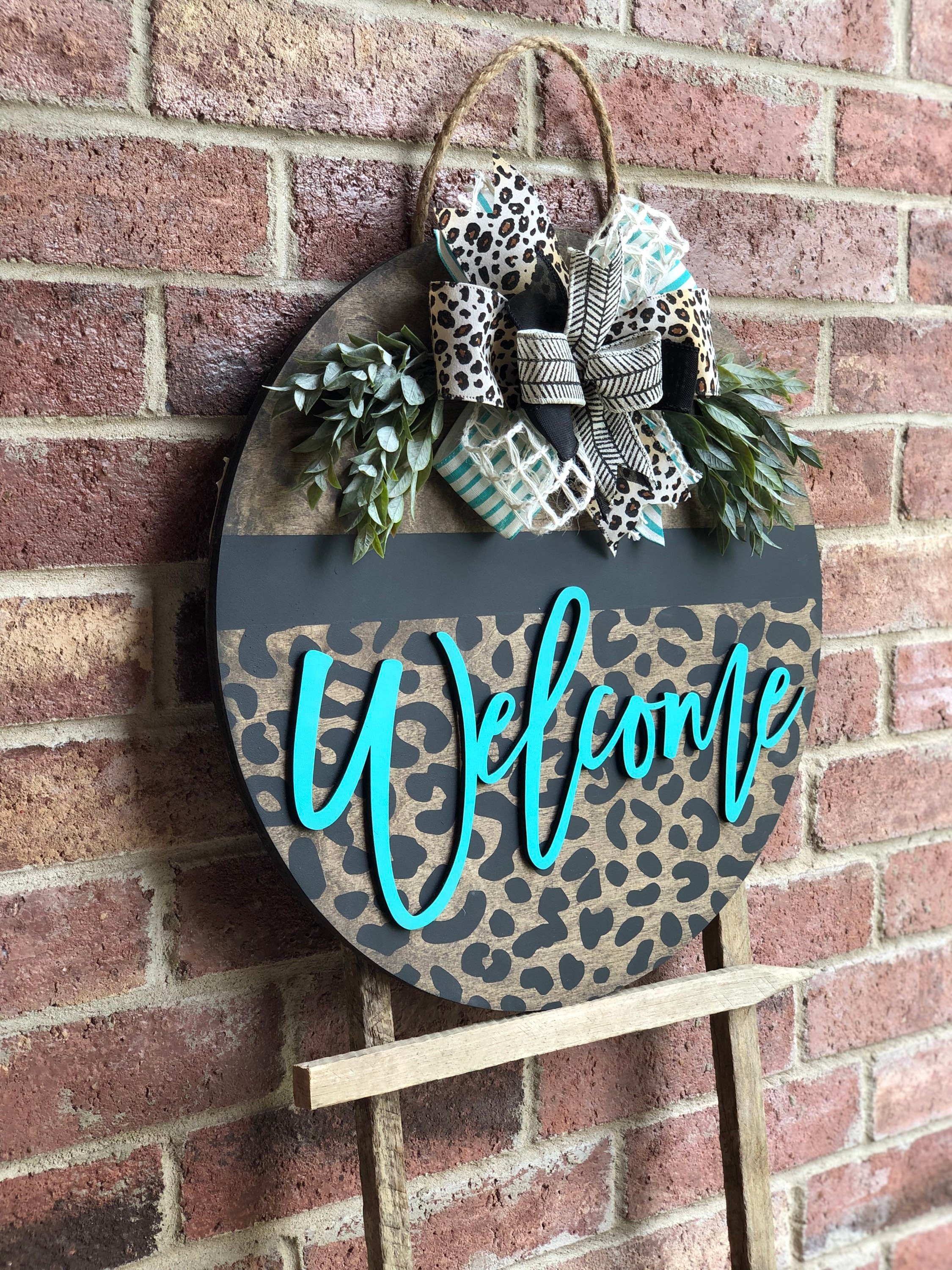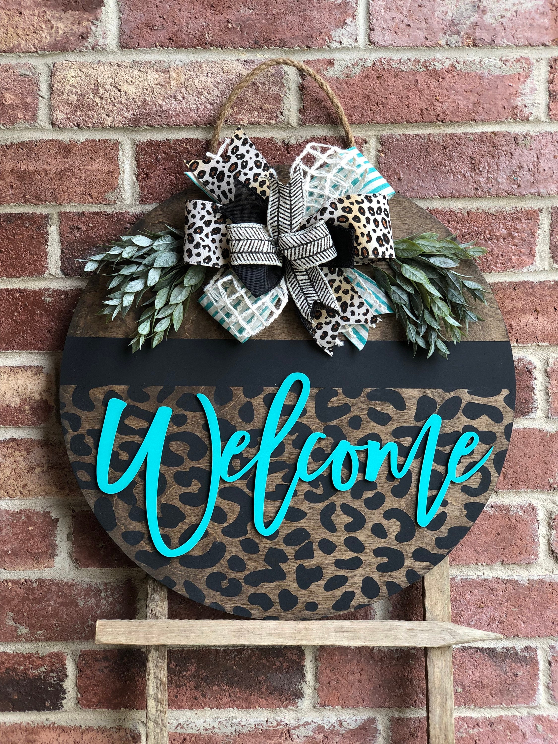 Front Door Decor, Leopard Door Hanger, Welcome Door Wreath, Front Door Sign, Porch Decor, Porch Sign, Leopard Print, Housewarming Gift