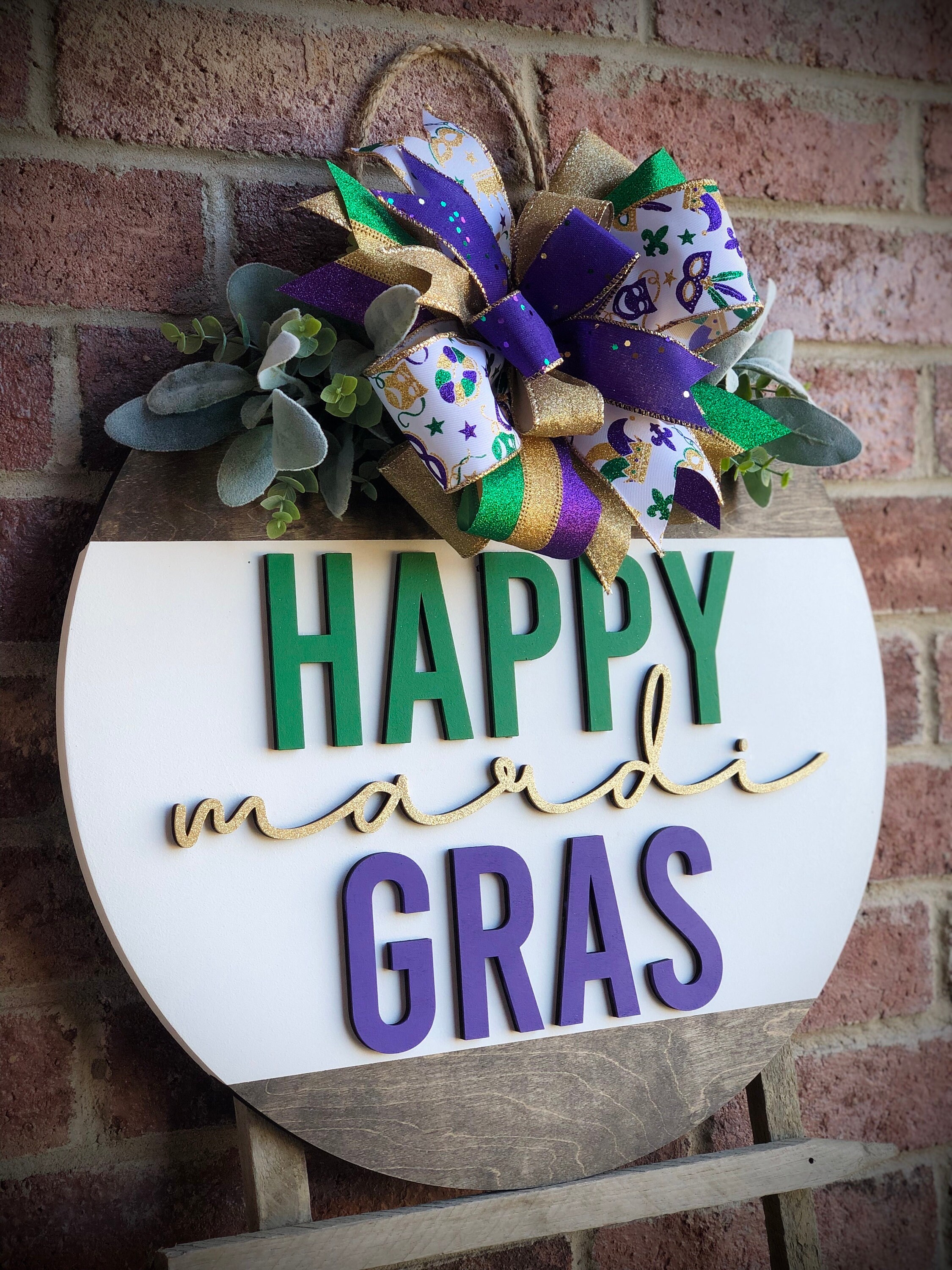 MARDI GRAS DECOR, DOOR HANGER, RUSTIC WOODEN PORCH DECOR OUTDOOR