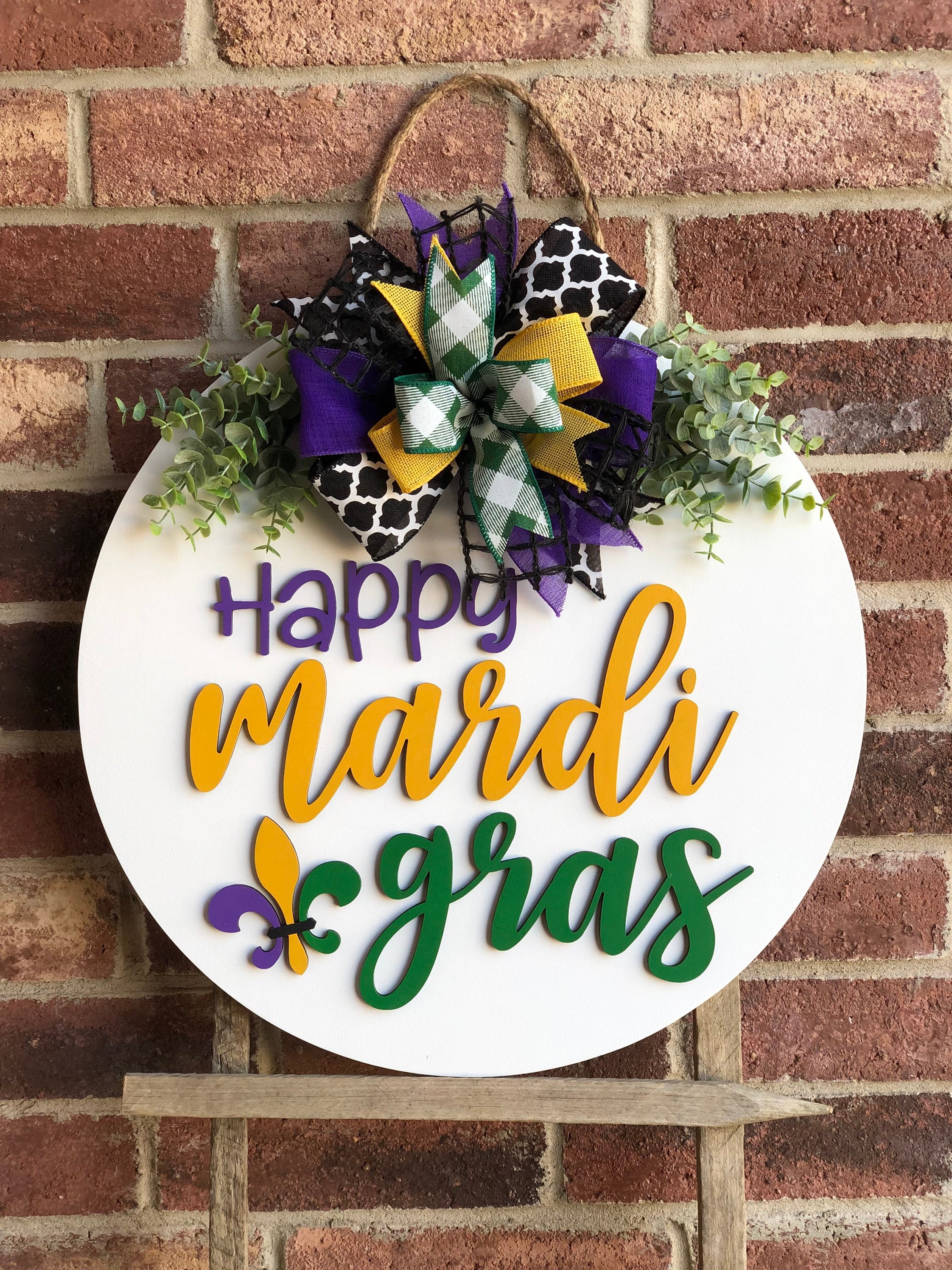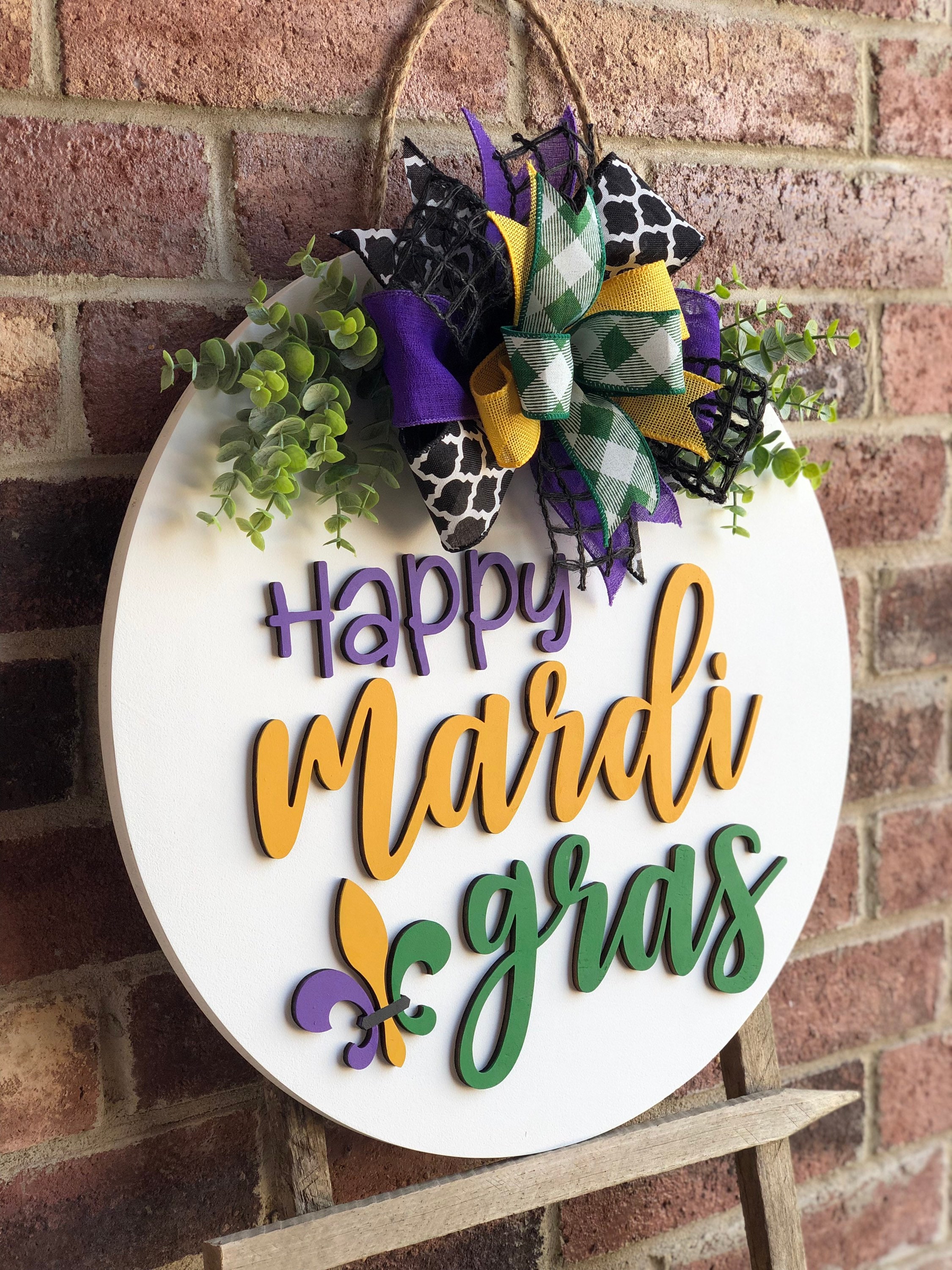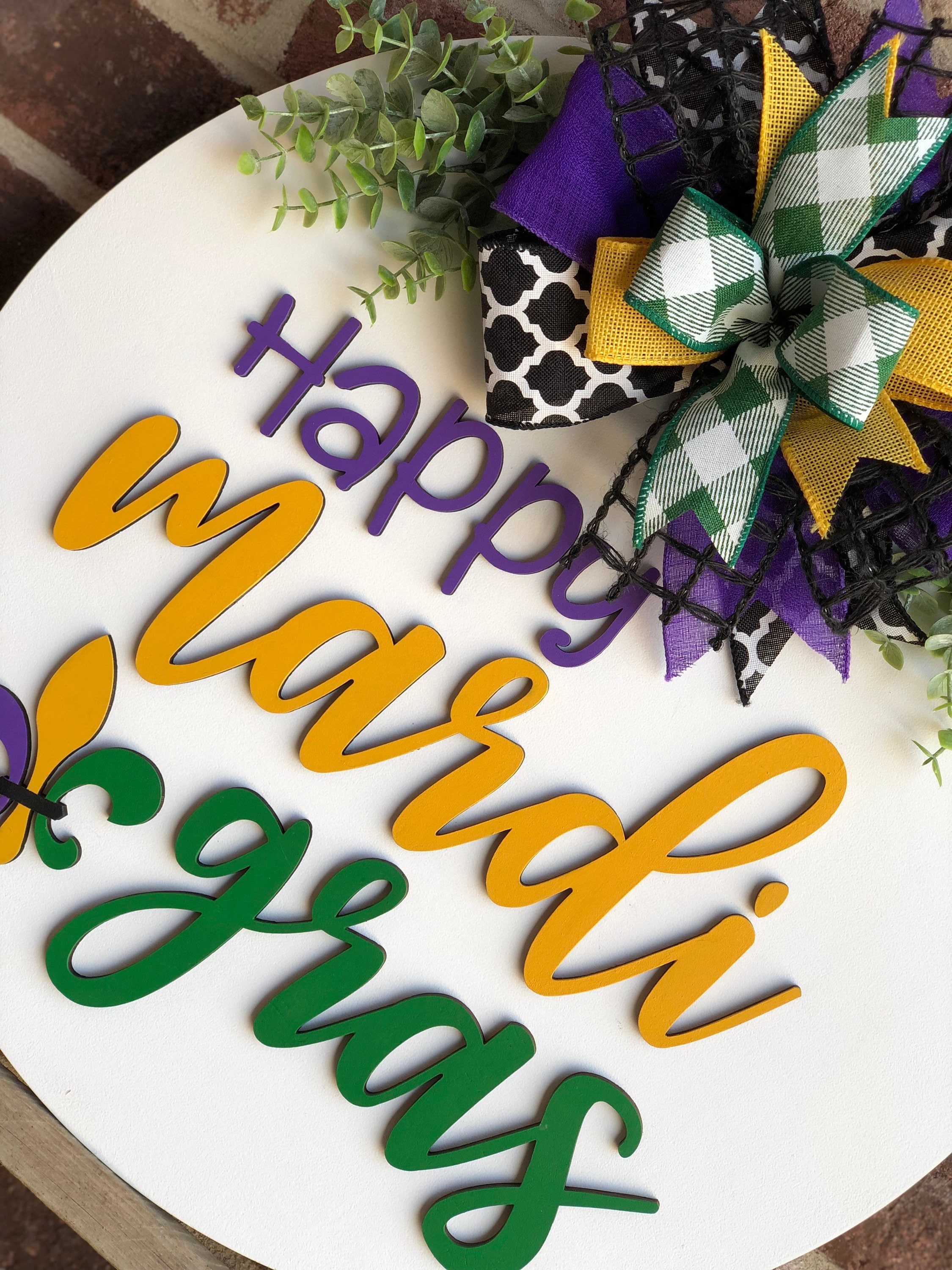 Mardi Gras Front Door Decor, Mardi Gras Door Hanger, Wood Mardi Gras Wreath, Fleur De Lis Porch Decor, Home Decor, Rustic Farmhouse Outdoor
