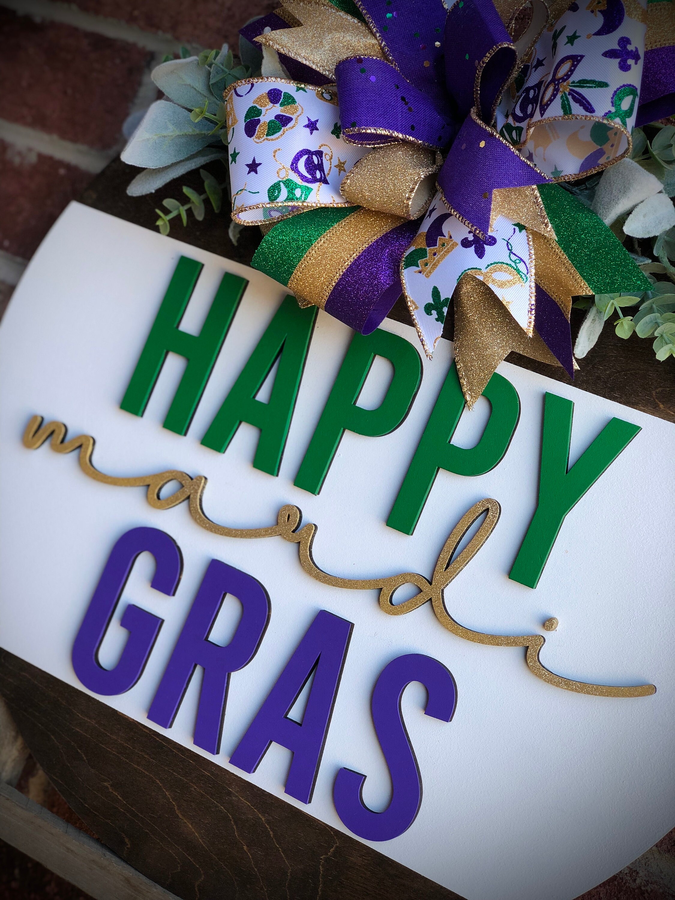 These make the perfect gift for a loved one! Whether it be a housewarming gift, wedding gift, client gift, or just for yourself for your home… we have you covered! This beautiful Happy Mardi Gras Decor Door Hanger is one of a kind!