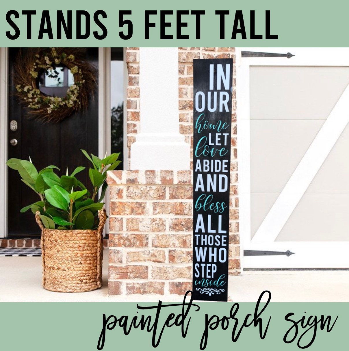 Does your front porch need some new life? This beautiful Religious Quote ‘In Our Home’ Porch Sign is one sure way to create the curb appeal you are looking for and is very inviting outdoor decor! It makes as a great statement piece for your front porch and all of your neighbors and friends will be asking where you found such a unique piece. Maybe you’ve just purchased a new home and are thinking ‘do I need this for our first home?’…. Yes, yes you do!