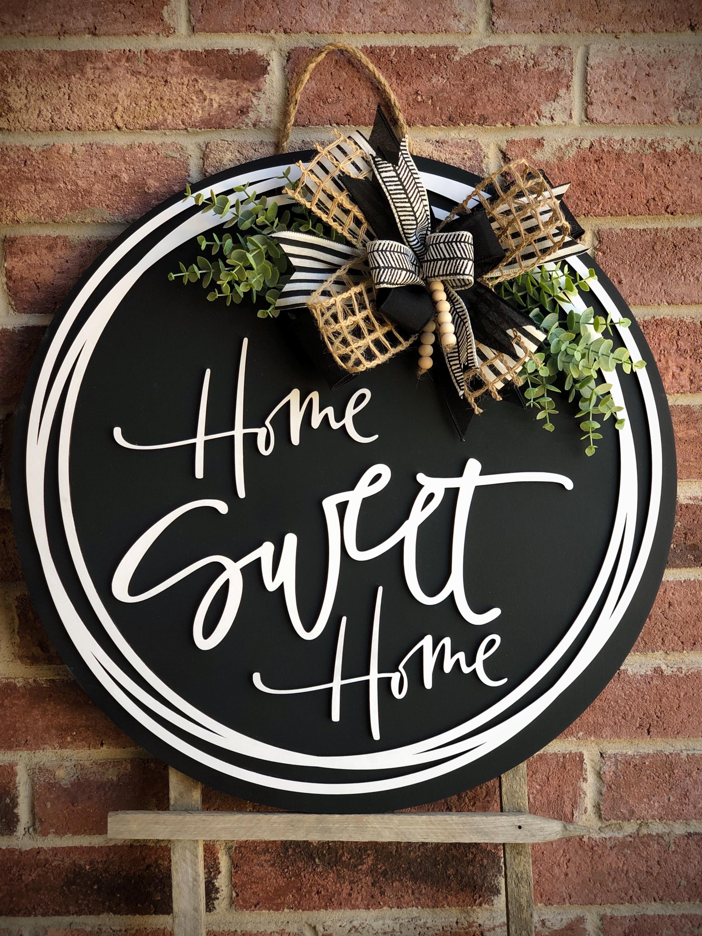 Home Sweet Home Door Hanger Wreath, Front Door Decor, Farmhouse Decor, Front Door Sign, Porch Decor, Porch Sign, Outdoor Wooden Sign, Gift