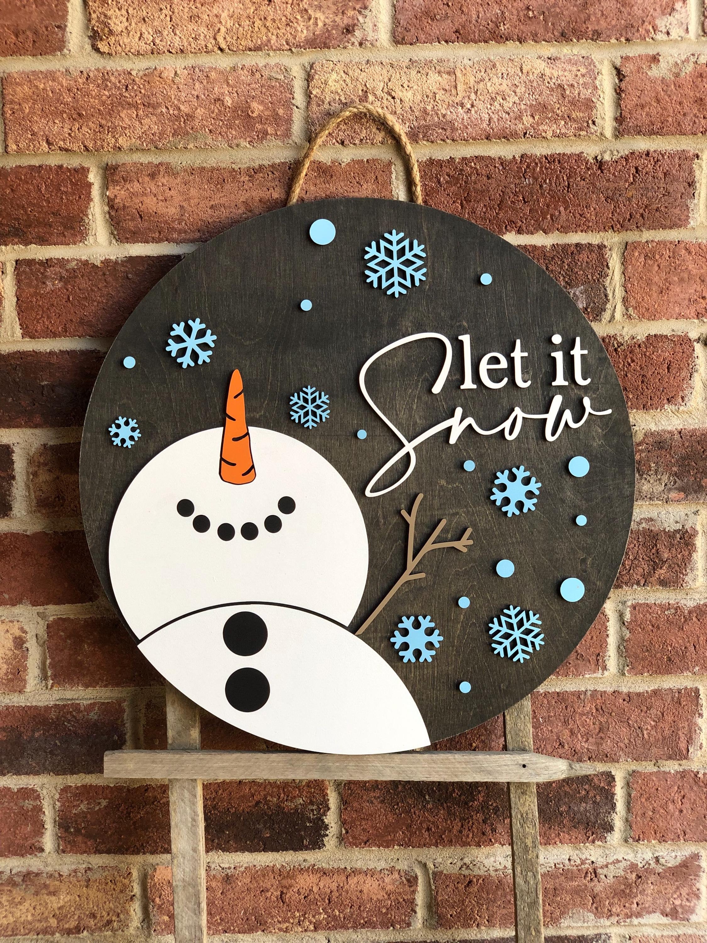 Snowman Let It Snow Door Hanger, Snowman Sign, Front Door Decor, Raised 3D Lettering Winter Wreath, Winter Decorations, Porch Decor, Gift