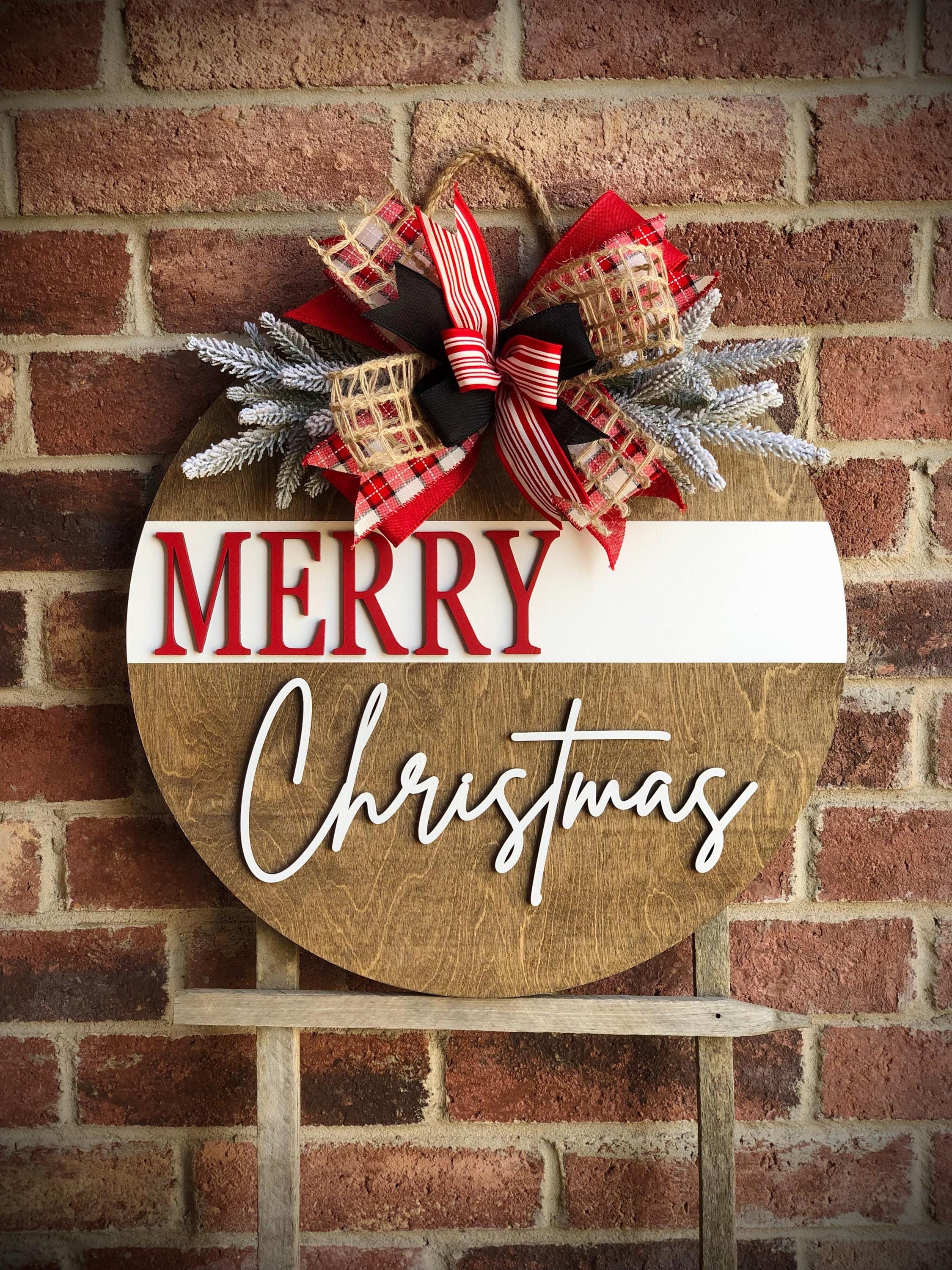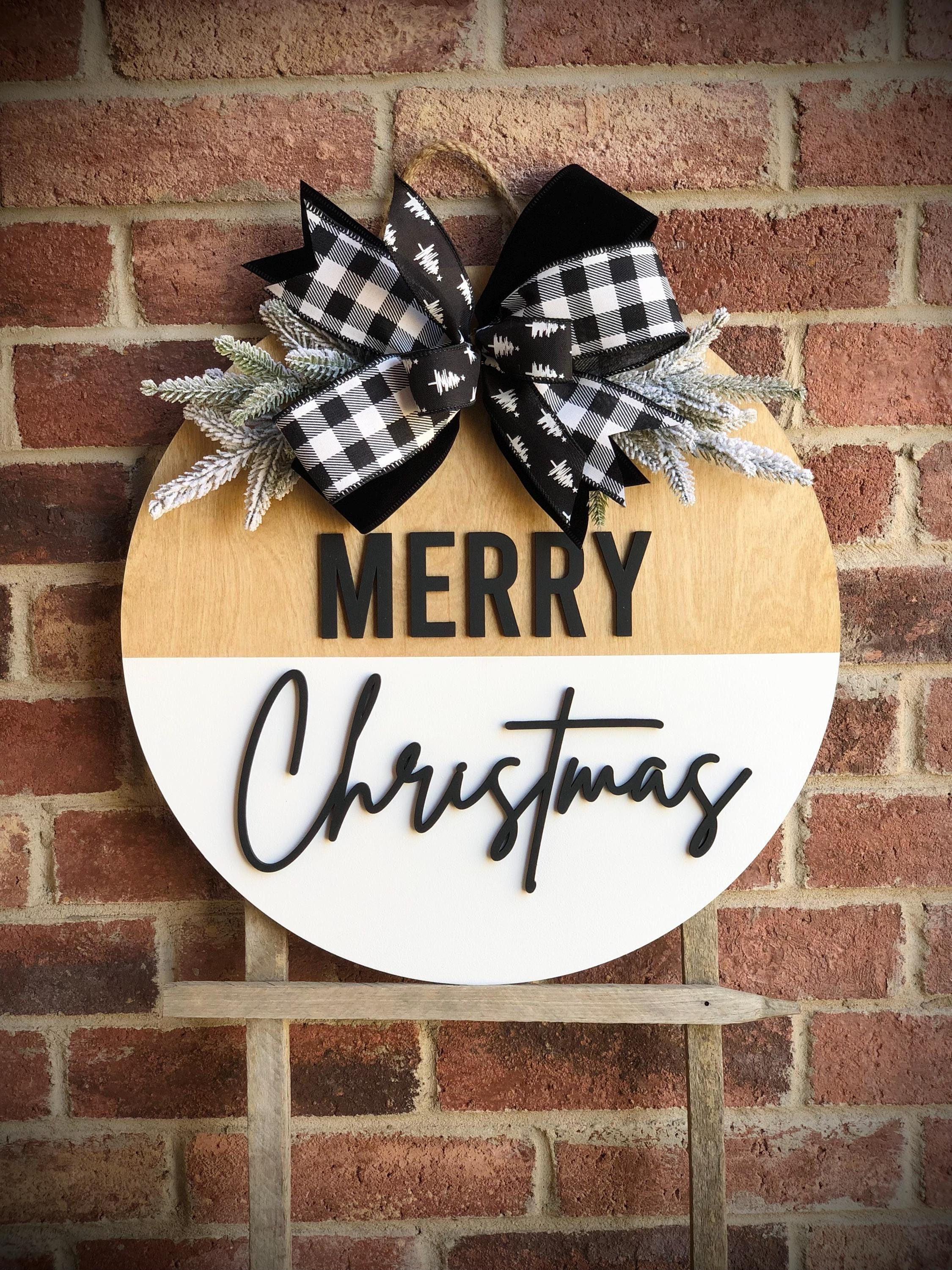 Merry Christmas Door Hanger For Front Door, Christmas Decor, Raised 3D Lettering Christmas Wreath, Christmas Decorations, Porch Decor, Gift