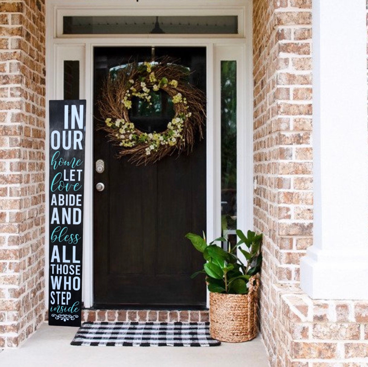 Religious Porch Sign, In our Home Welcome Sign, Front Porch Decor, Front Door Sign, 5 FT Vertical Wooden Sign, Housewarming Gift