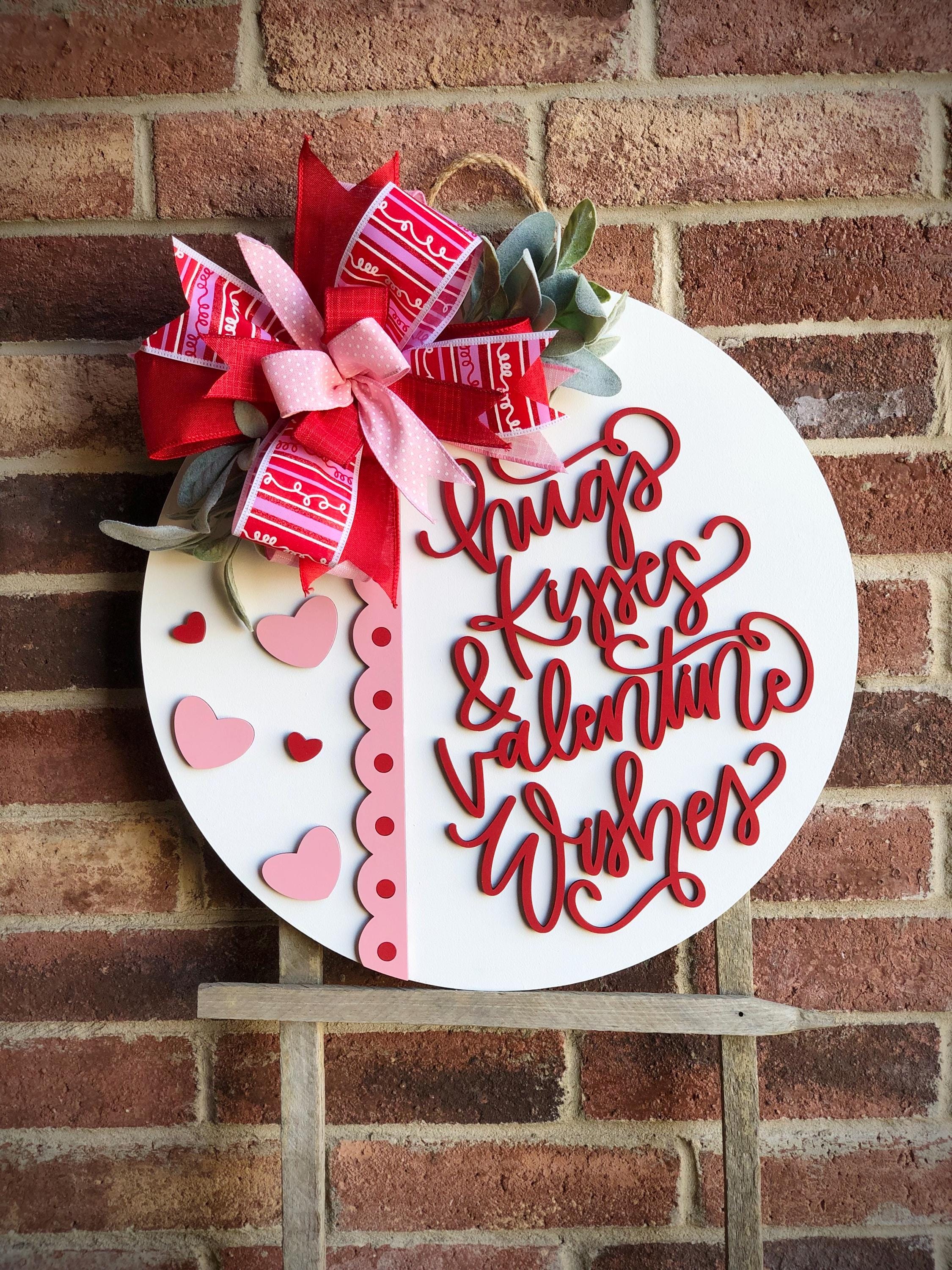 Valentines Front Door Decor, Valentines Wreath, Happy Valentines Day Door Hanger, Door Wreath, Front Door Sign, Heart Home Decor, Wood Sign