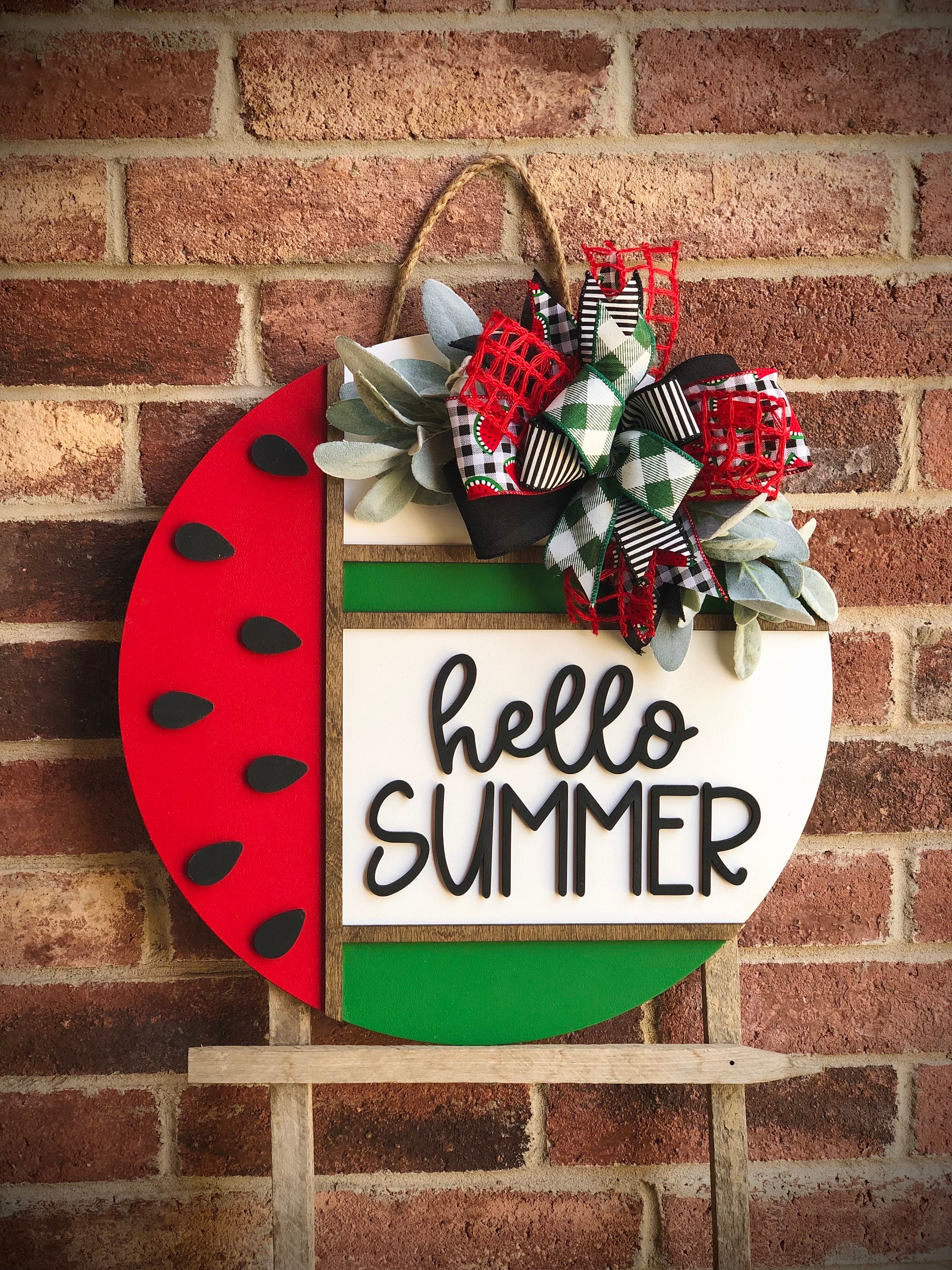 Watermelon Summer Door Hanger, Front Door Decor, Hello Summer Wreath Porch Decor, Home Decor, Summer Decor, Front Door Sign, Farmhouse Gift